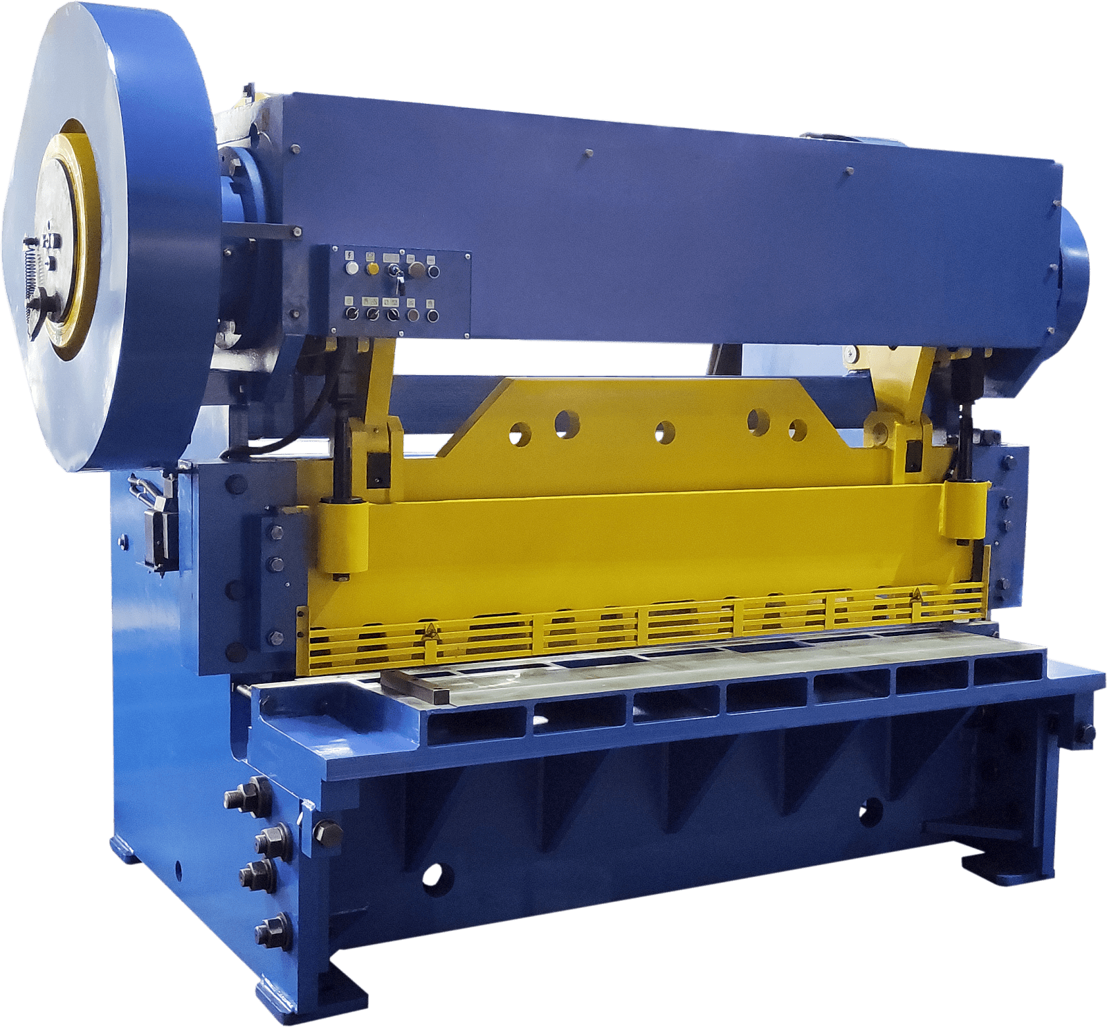 - Электромеханические гильотинные ножницы с гидроприжимами и пневмомуфтой.