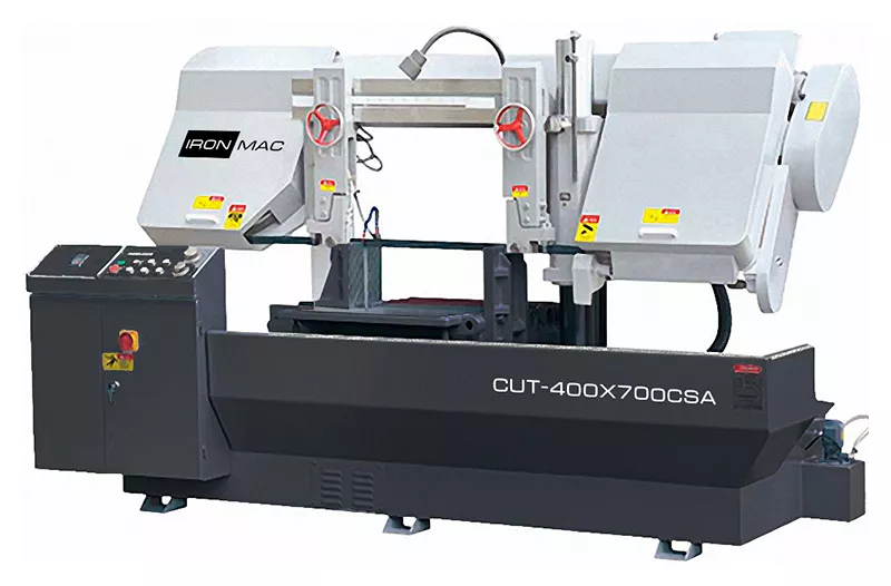 Полуавтоматические ленточнопильные станки IRONMAC CUT-400x700СSA* предназначены для резки под углом 90° профильных заготовок из чугуна, стали (включая инструментальную и нержавеющую), легких и цветных металлов.Модель CUT-400x700СSA - полуавтоматический ленточнопильный станок портального типа на колоннах*.